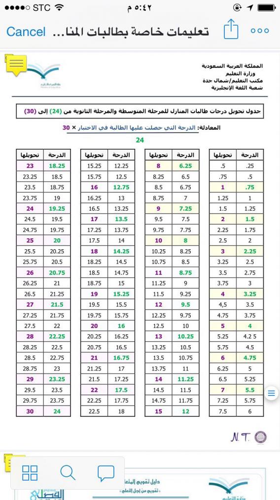 جدول تحويل درجات طالبات المنازل لمادة اللغة الأنجليزية 2016 م منتدى التعليم توزيع وتحضير المواد الدراسية